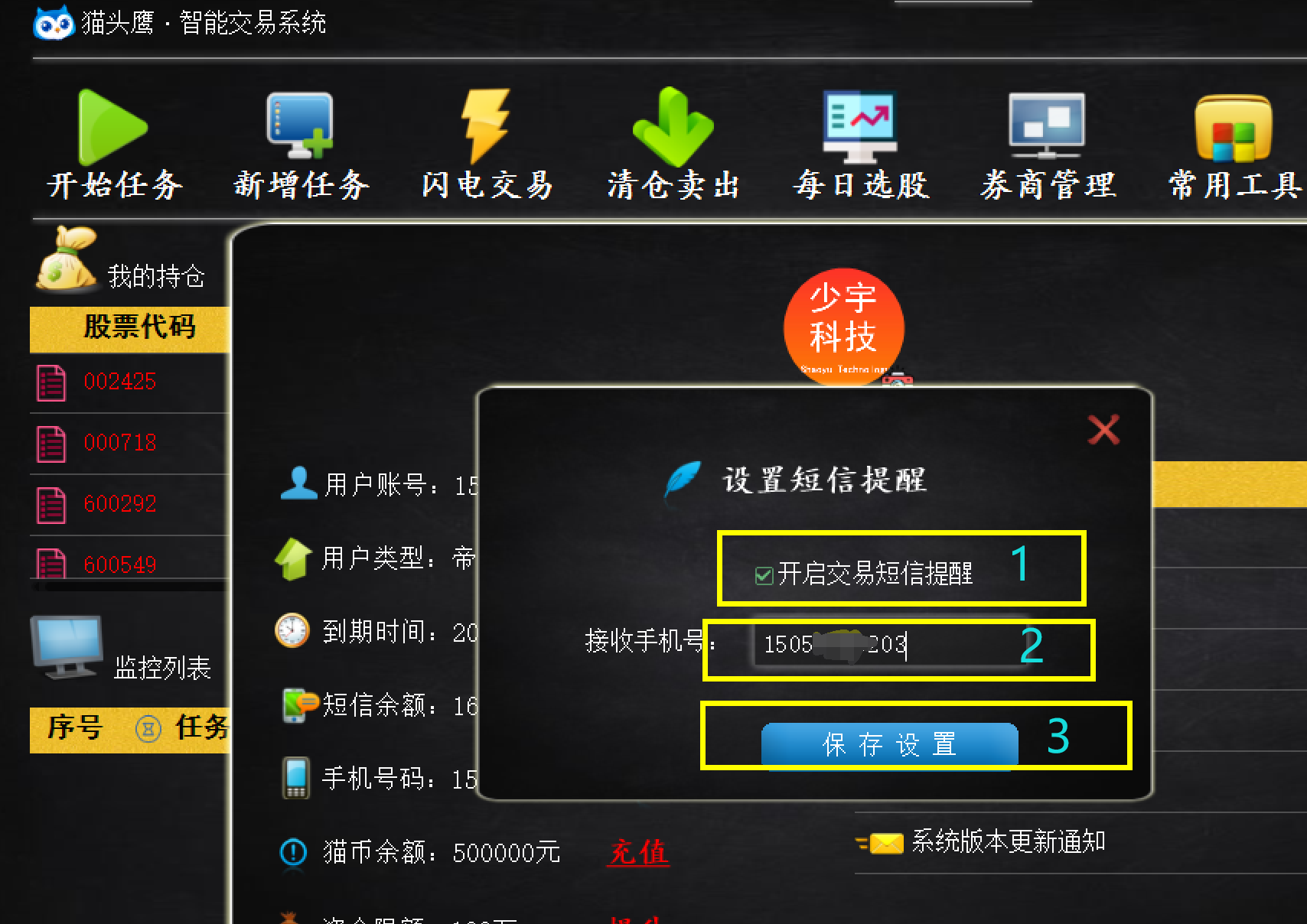 设置完毕,请注意,短信数量需要客户端自助购买!