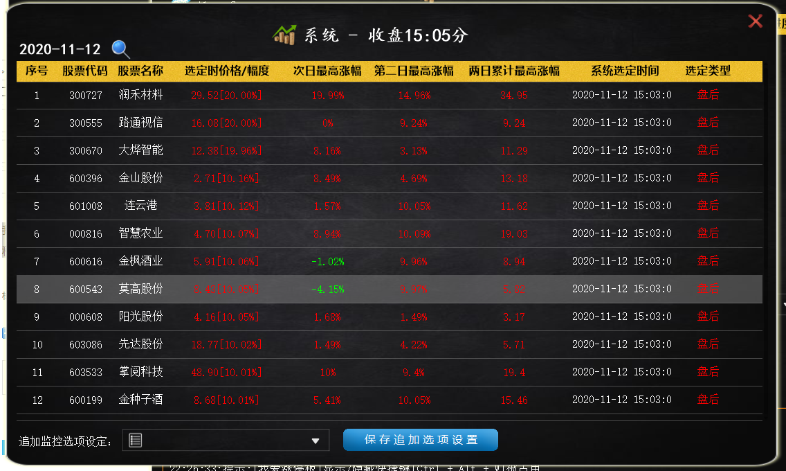 我爱涨停板 - 自动强涨停功能(尾盘):系统自选筛选品种,自动强涨停,全程无需人工参与(*用户可以对筛选后的目标品种进行自定义二次筛选,提示:目标品种由云端加密策略自动计算筛选,本系统不承担任何风险)详情请联系客服进群学习交流。